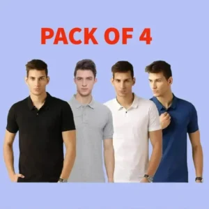 Men’s Cotton Solid Half Sleeves Polo Neck T-Shirt Pack of 4