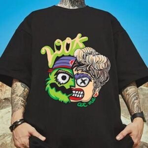 Manlino Men’s Black Half Sleeve Round Neck Oversized Graphic Print T-Shirt