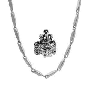 Silver plated chain with silver plated KGF LION shape adjustable ring combo set Rhodium Plated Stainless Steel Chain