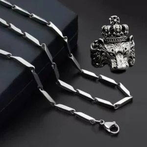 • Product Name: Silver plated chain with silver plated KGF LION shape adjustable ring combo set Rhodium Plated Stainless Steel Chain