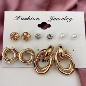 • Product Name: Gold plated 6 Pair Gorgeous Hoop and Stud Earrings For Women and Girls