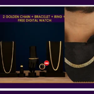 • Product Name: Pack Of 2 Golden Chain With Bracelet + Ring + Digital Watch Combo