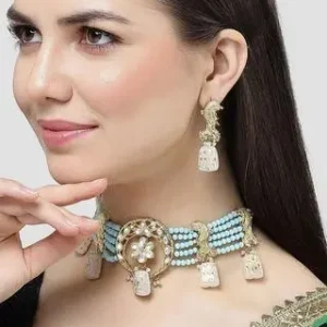 • Product Name: Karatcart White Designer Tumble Light Blue Crystal Beaded Kundan Choker Necklace Set