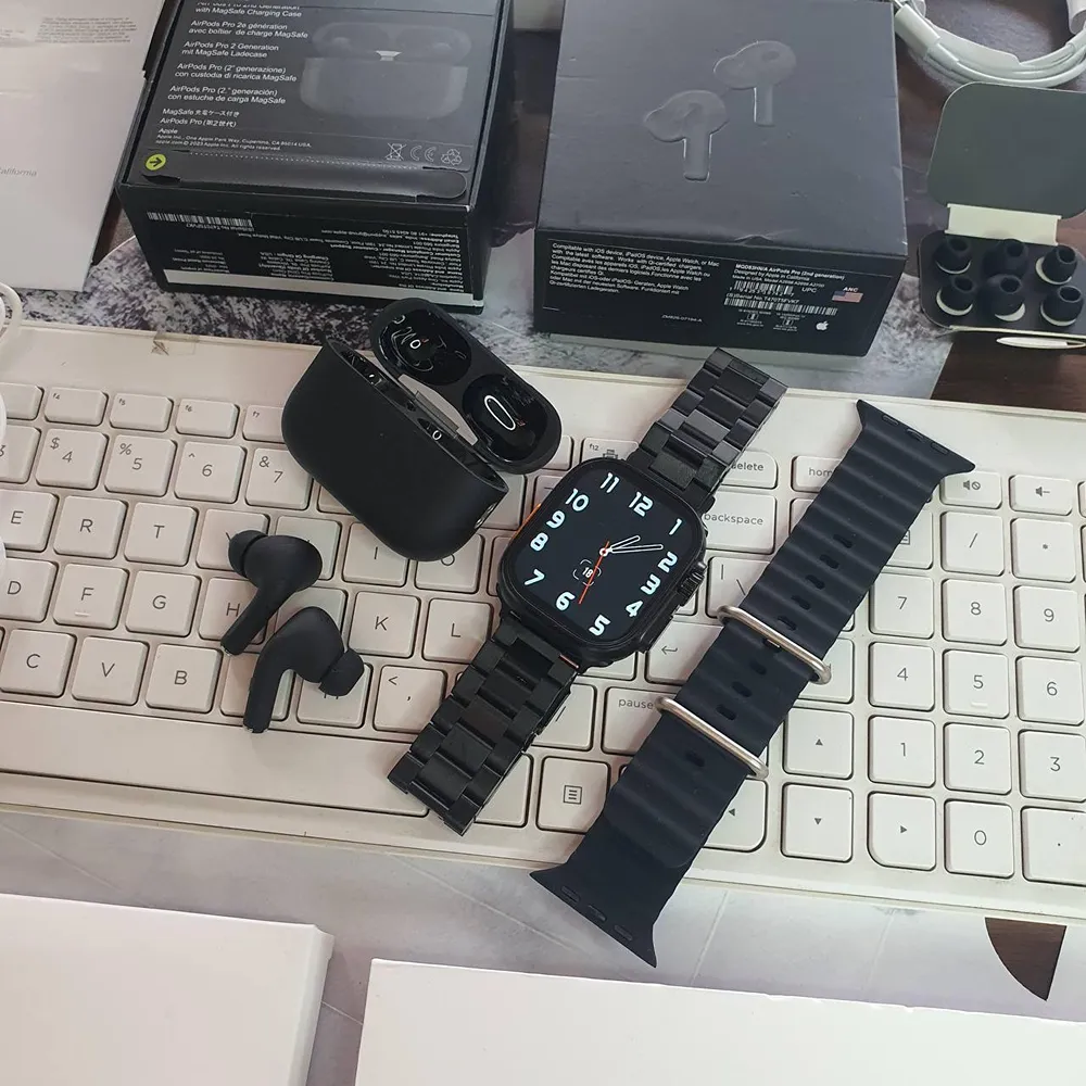 - Sleek All-Black Design: The sophisticated all-black finish of both the Apple Watch Ultra and AirPods Pro 2 adds a touch of elegance, making them a perfect accessory for any outfit or occasion.