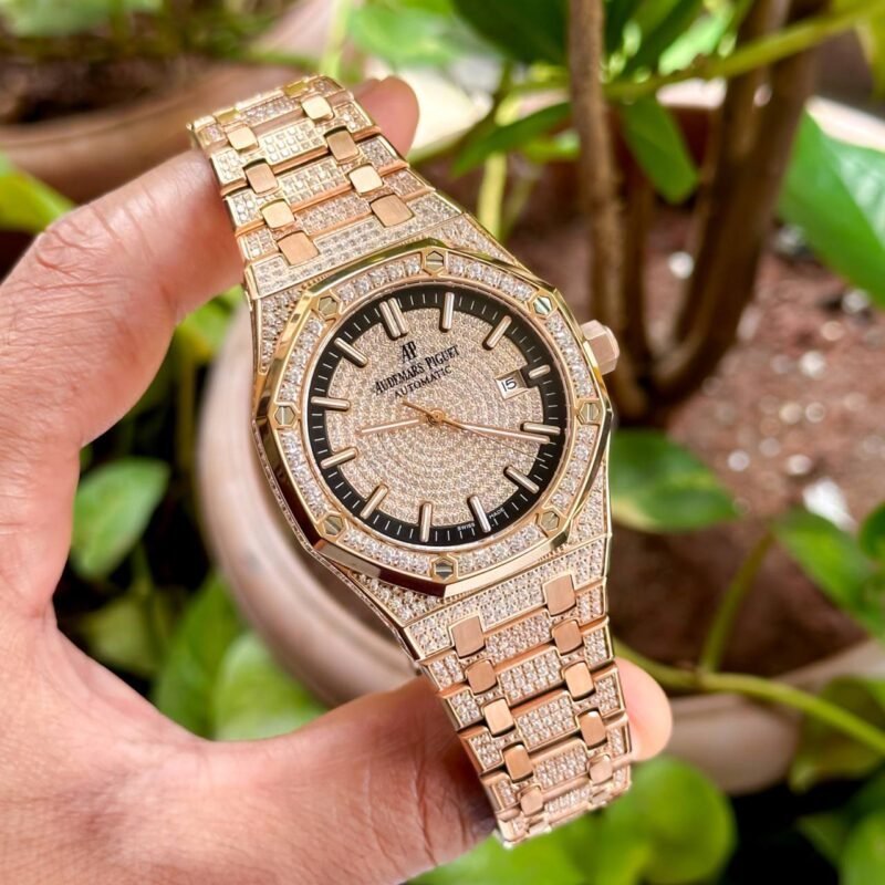 – Stainless steel Rosegold Diamond Studed Case With Diamond In The Dial & Date Indicator