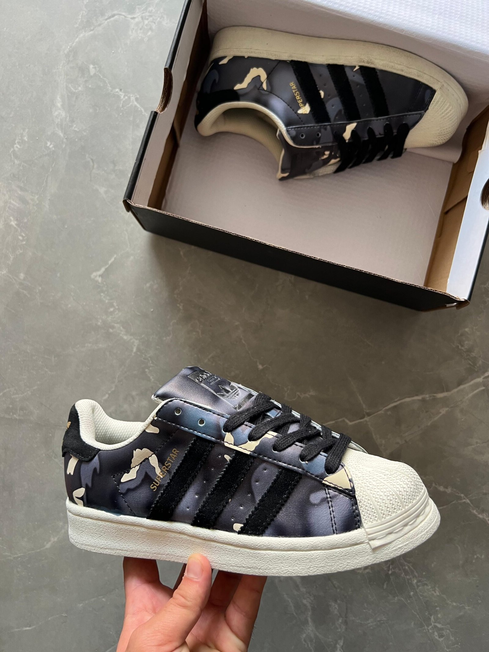 - These sneakers are replicas inspired by the Adidas Superstar design and are not endorsed or authorized by the original brand.