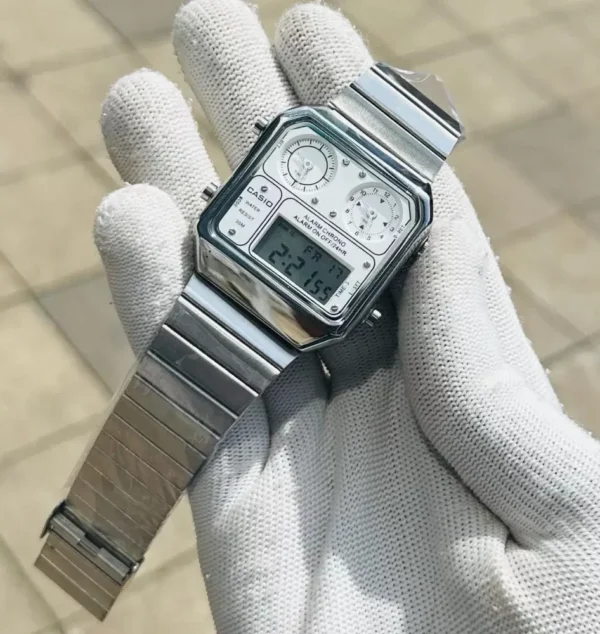 The Casio Chrono Analog – Digital white Dial Watch for Men is a perfect blend of retro charm and modern functionality. This classic timepiece is designed to cater to both men and women, making it a versatile addition to any wardrobe.
