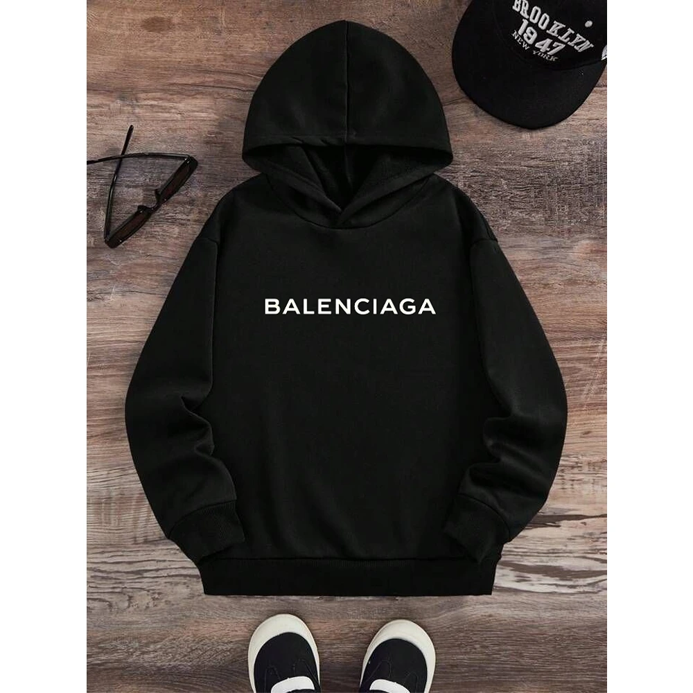 Premium Cotton Printed Balenciaga Hoodie For Men, Black