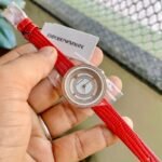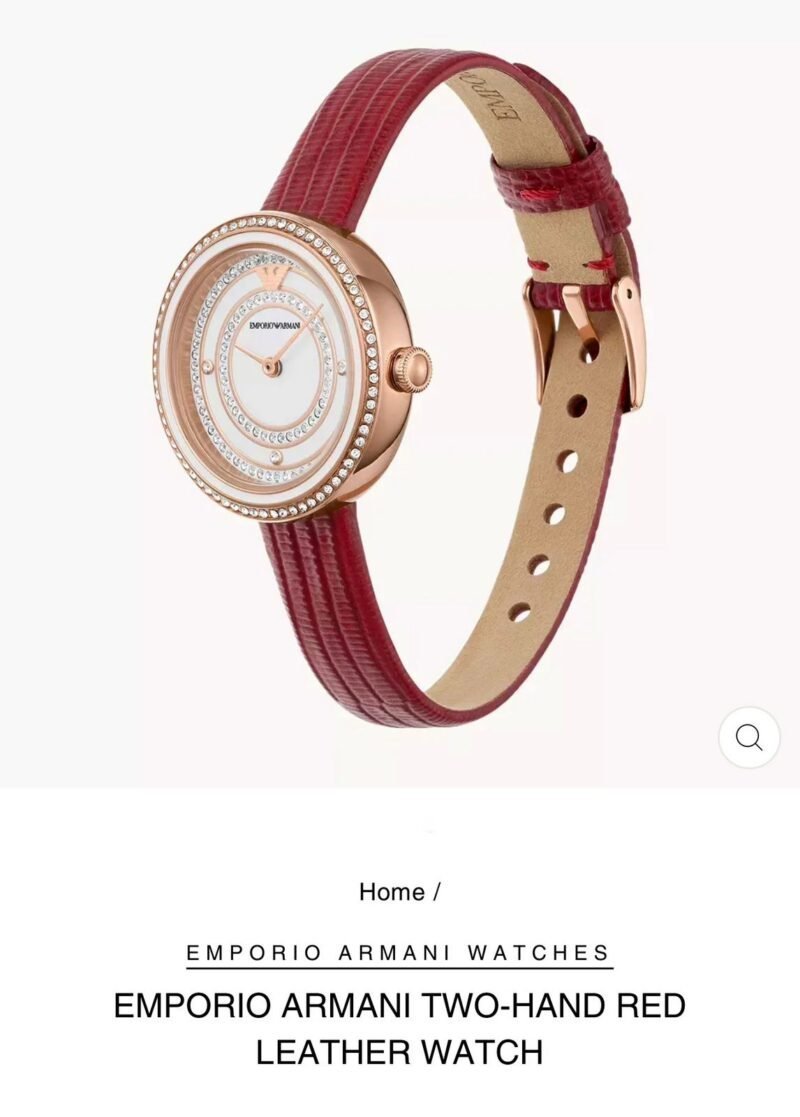 *_EMPORIO ARMANI TWO-HAND RED LEATHER WATCH_*
