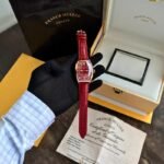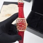 👉🏽 Features: Powered by original Japanese self-winding automatic machinery, Stainless-steel rosegold Curvex shaped case, Sapphire glass on a red dial with irregular hour markers, fastened by a high quality red croc leather strap with a pin buckle.