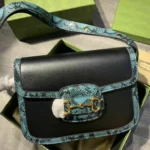 Gucci Horsebit Black Python Sling Bag With Box