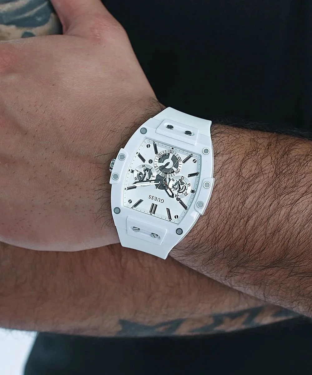 ✅Skeleton dial details keep this phoenix on the rise. Featuring a white barrel-shaped case with a matching multi-function dial, this pairs perfectly with a smooth white silicone strap. ✅