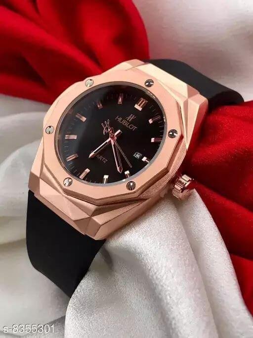 Introducing the Hublot Black Dial Watch with a sleek and sophisticated design. This high-quality timepiece is crafted with attention to detail, ensuring a luxurious experience for men. The black dial and blackout band exude a sense of elegance and style. Powered by a reliable quartz movement, this watch offers precise timekeeping.