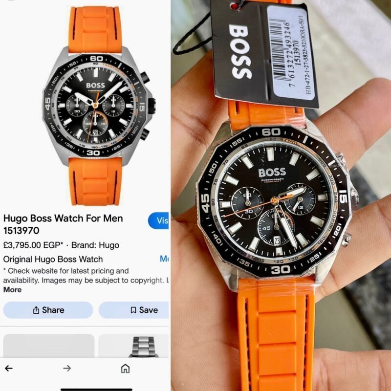 ⬆️Original Hugo Boss Watch For Men In Egypt Energy 1513970 With Black Dial Orange Rubber Strap ⬆️
