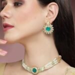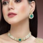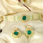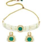 Be the first to review “Karatcart Lime Green Beads and Pearl Beaded Green Polki Kundan Choker Necklace Set”