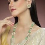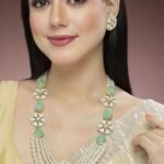 The Karatcart Pearl Beaded Light Green Carved Stone Kundan Rani Haar Necklace Set is a regal and sophisticated piece, designed to make a statement at festive and ethnic gatherings. Featuring beautifully crafted Kundan work, light green carved stones, and delicate pearl beads, this Rani Haar necklace set is perfect for women seeking to add a touch of elegance to their special occasion outfits. The set includes a striking necklace and matching earrings, making it an ideal choice for brides, bridesmaids, or any woman looking to shine at a cultural celebration. The gold-plated alloy construction ensures durability and a luxurious look.