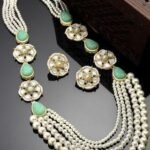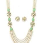 Product Name: Karatcart Pearl Beaded Light Green Carved Stone Kundan Rani Haar Necklace Set for Women