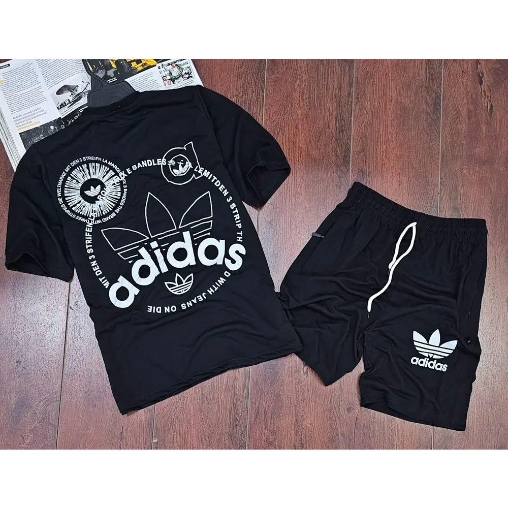 Men Sports Cotton Adidas T-Shirt Shorts, Black (KDB-2426667)