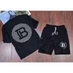 Men Sports Cotton Balmain Paris T-Shirt Shorts, Black (KDB-2426671)