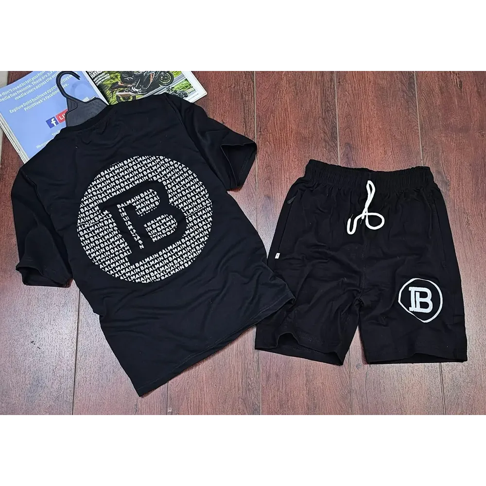 Men Sports Cotton Balmain Paris T-Shirt Shorts, Black (KDB-2426671)