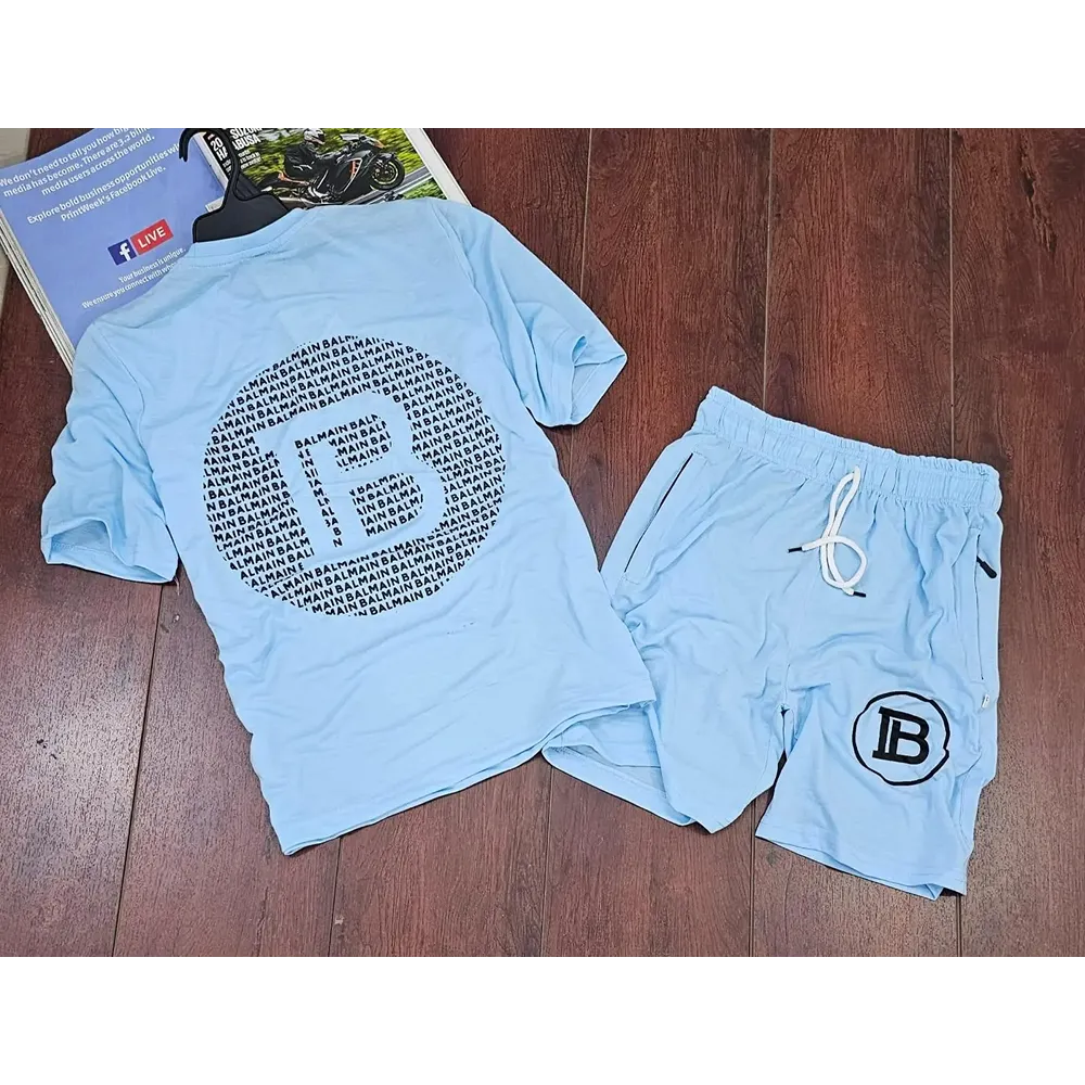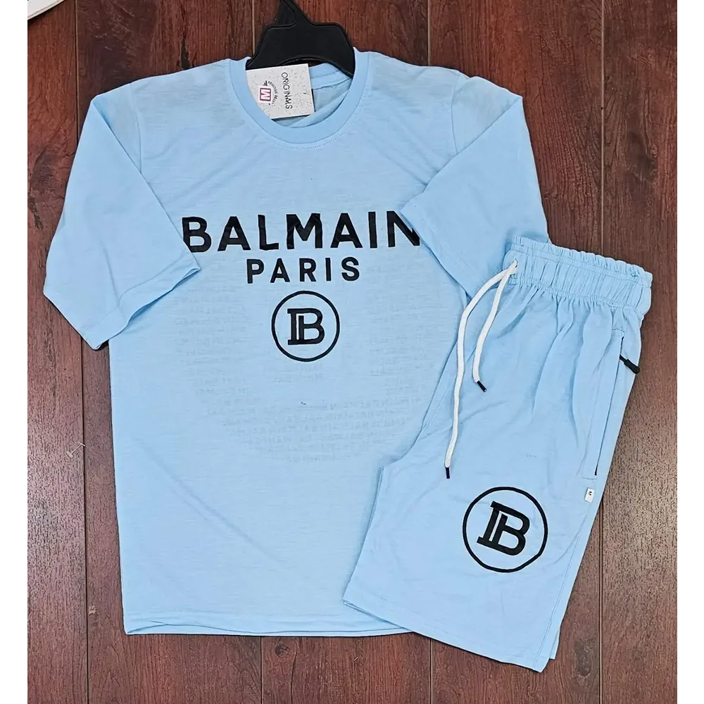 Men Sports Cotton Balmain Paris T-Shirt Shorts