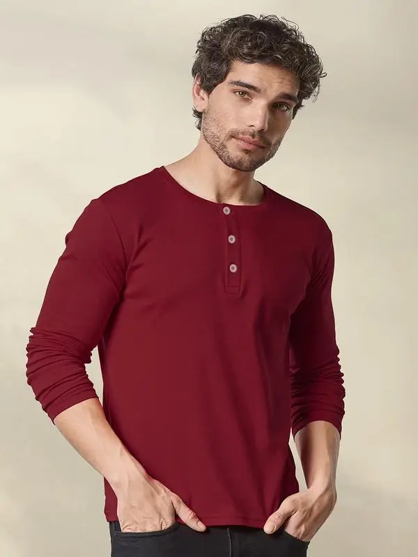 Men’s Full Sleeve Cotton Henley T-shirt