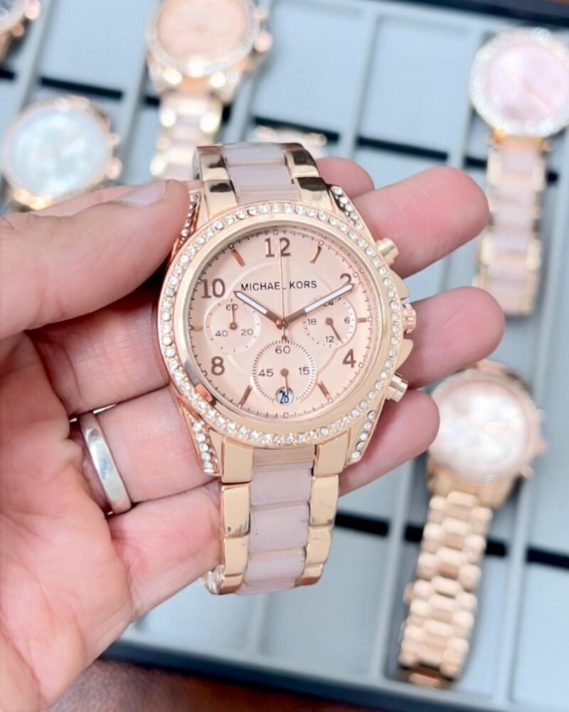 -Beautiful Mother of Pearl Pink Dial with Diamond studded rose gold bezel & case