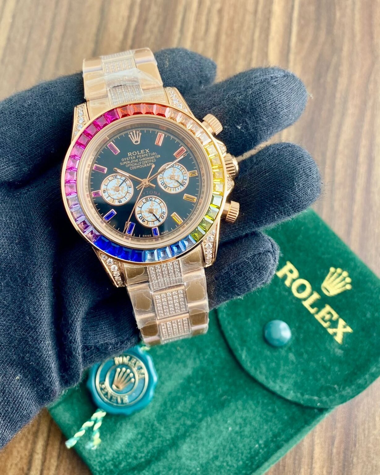 β *Special Rainbow Diamond Figures On Black Dial With Diamond Bezzel* giving premium look to your wrist.