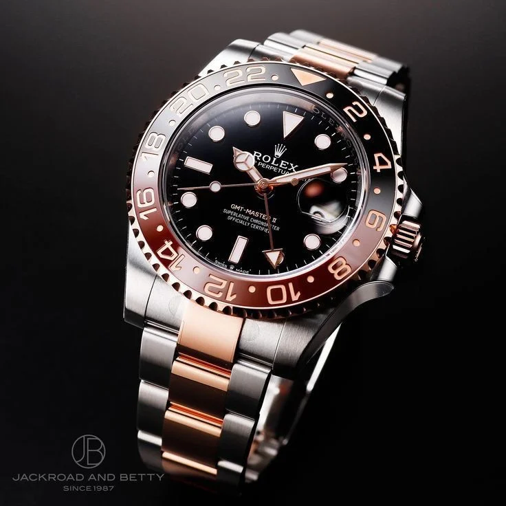 The Rolex GMT Master-II Two Tone Premium combines timeless elegance with modern functionality. Featuring a stunning rosegold tone steel body paired with a black dial and bezel, this timepiece offers an unmatched luxury experience. Its high-end automatic machinery ensures precise timekeeping, while the sapphire glass provides durability and scratch resistance.
