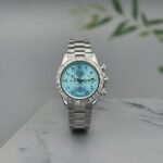 This Rolex Daytona model is presented as a unique version with an Arabic ice blue dial, making it a distinctive and eye-catching timepiece.