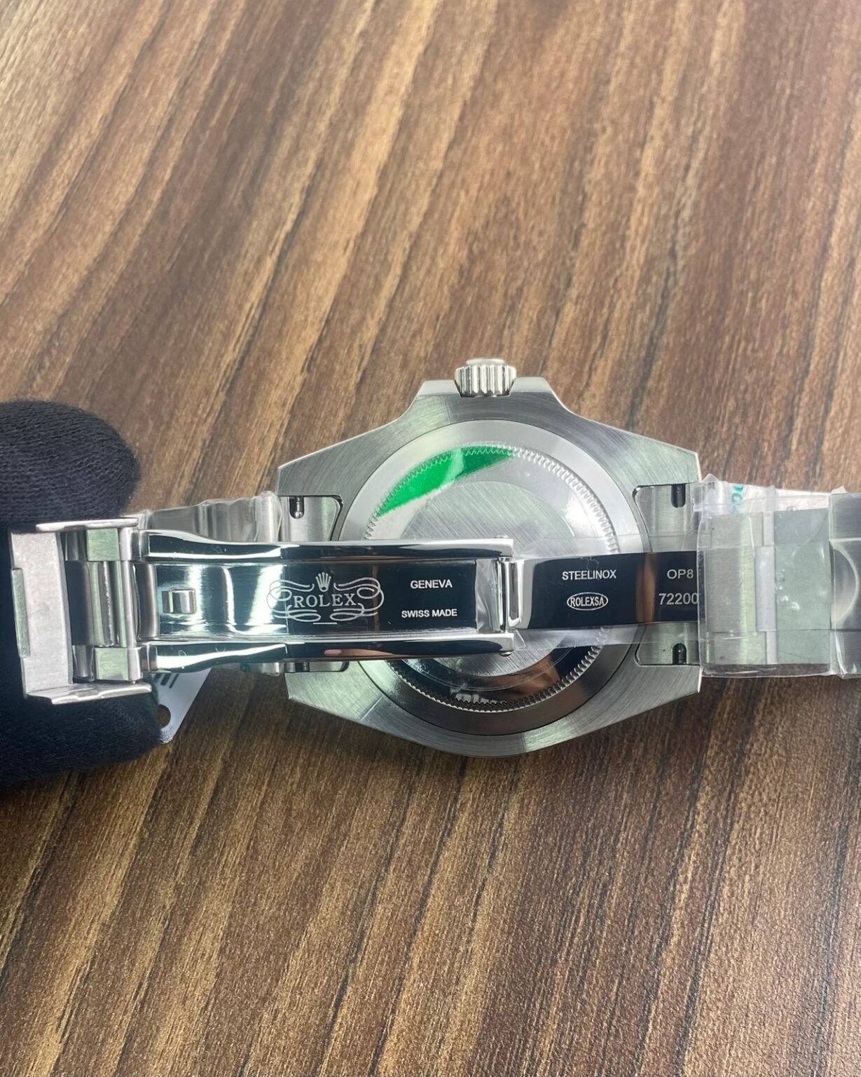 Date Indicator. Silver Stainless steel with Siramick Banzel and & Silver Case, Sapphire glass on a Green Colour dial with luminous indices and hands, fastened by Stainless Steel silver Oyester chain with original lock.
