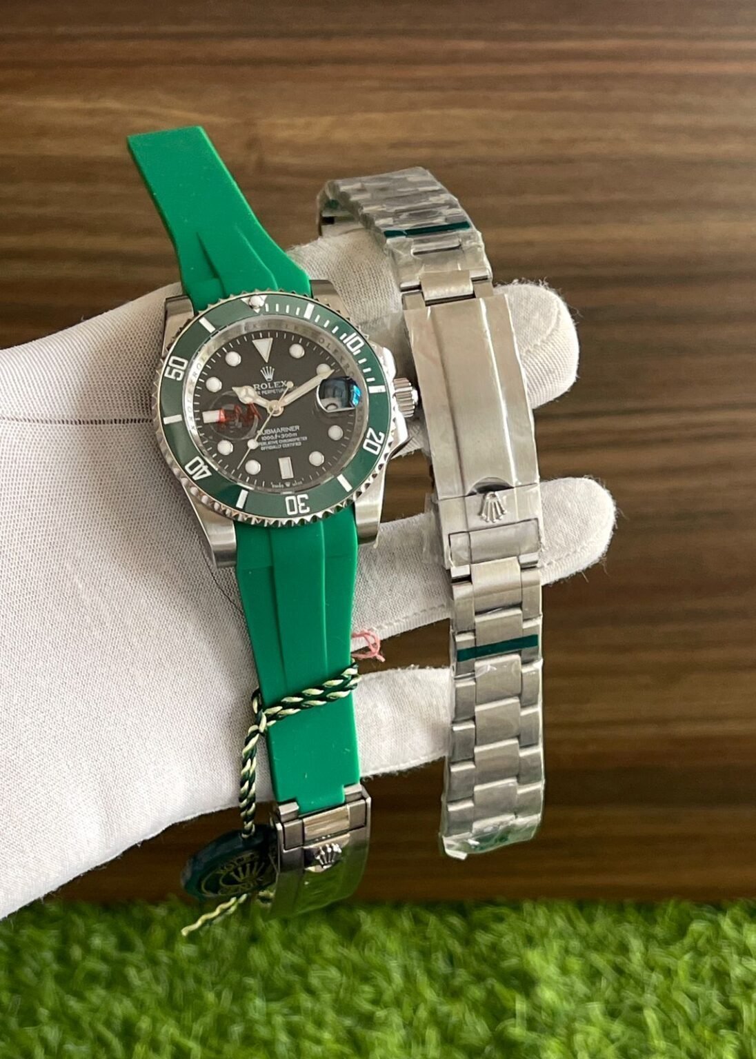 👉🏽Green strap belt With Oyster chain combo
