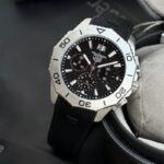 *Its bold black dial and striking design makes the TagHeuer Aquaracer a statement of sophistication.*