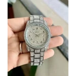 Trendy Rolex Arabic Silver Diamond Watch