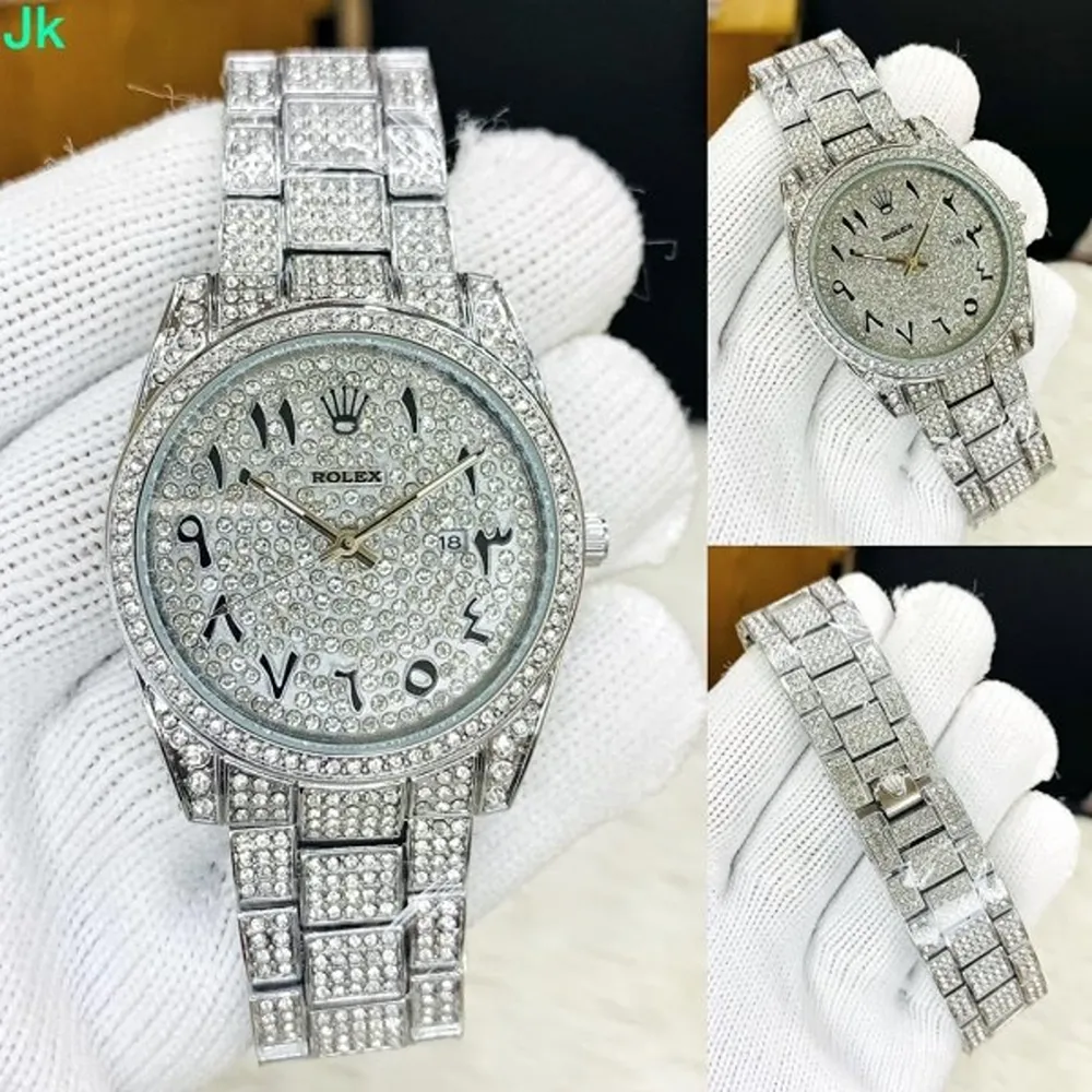 Trendy Rolex Arabic Silver Diamond Watch