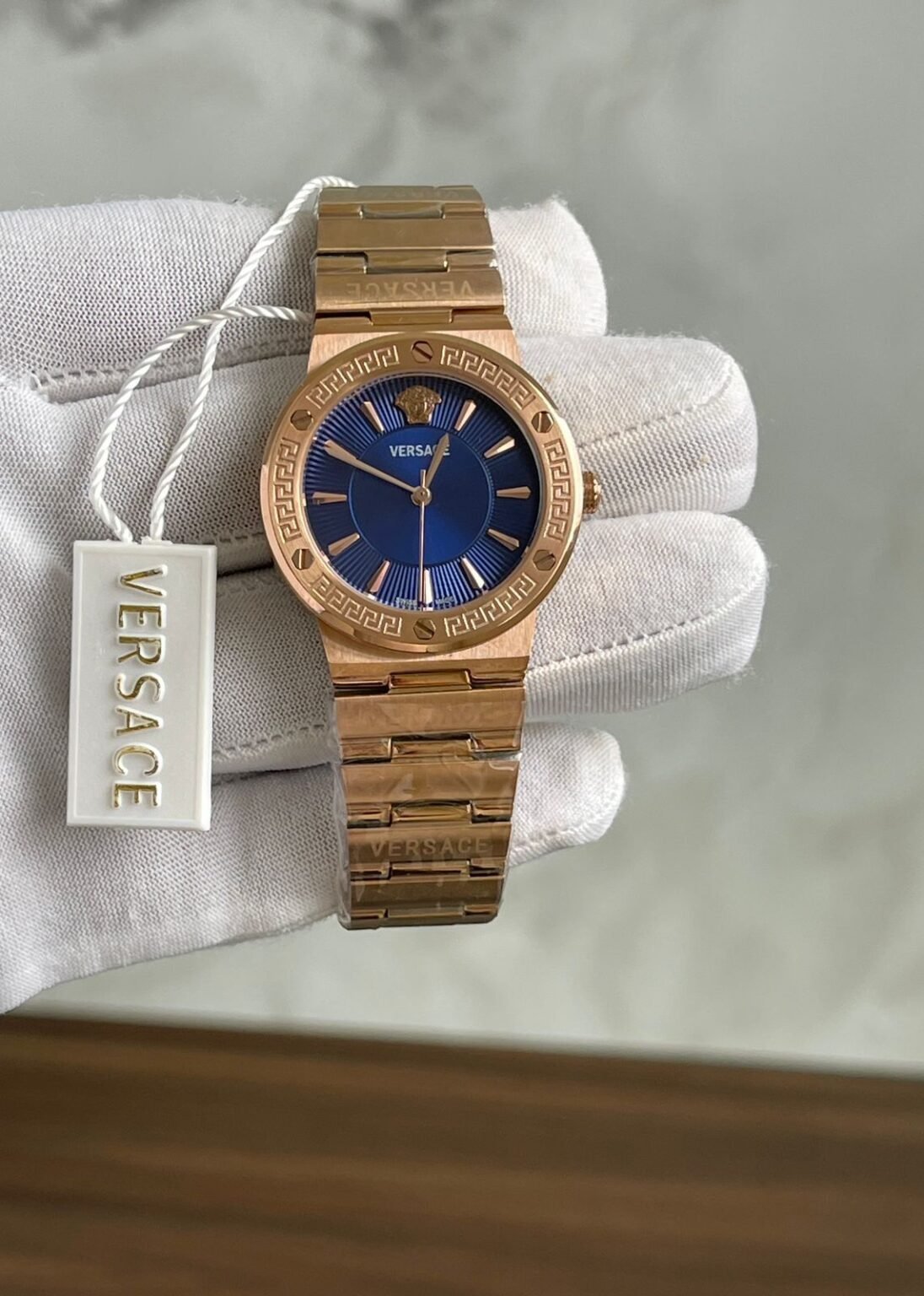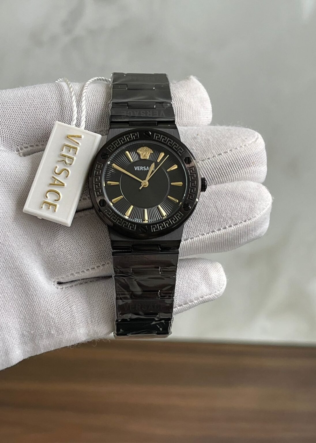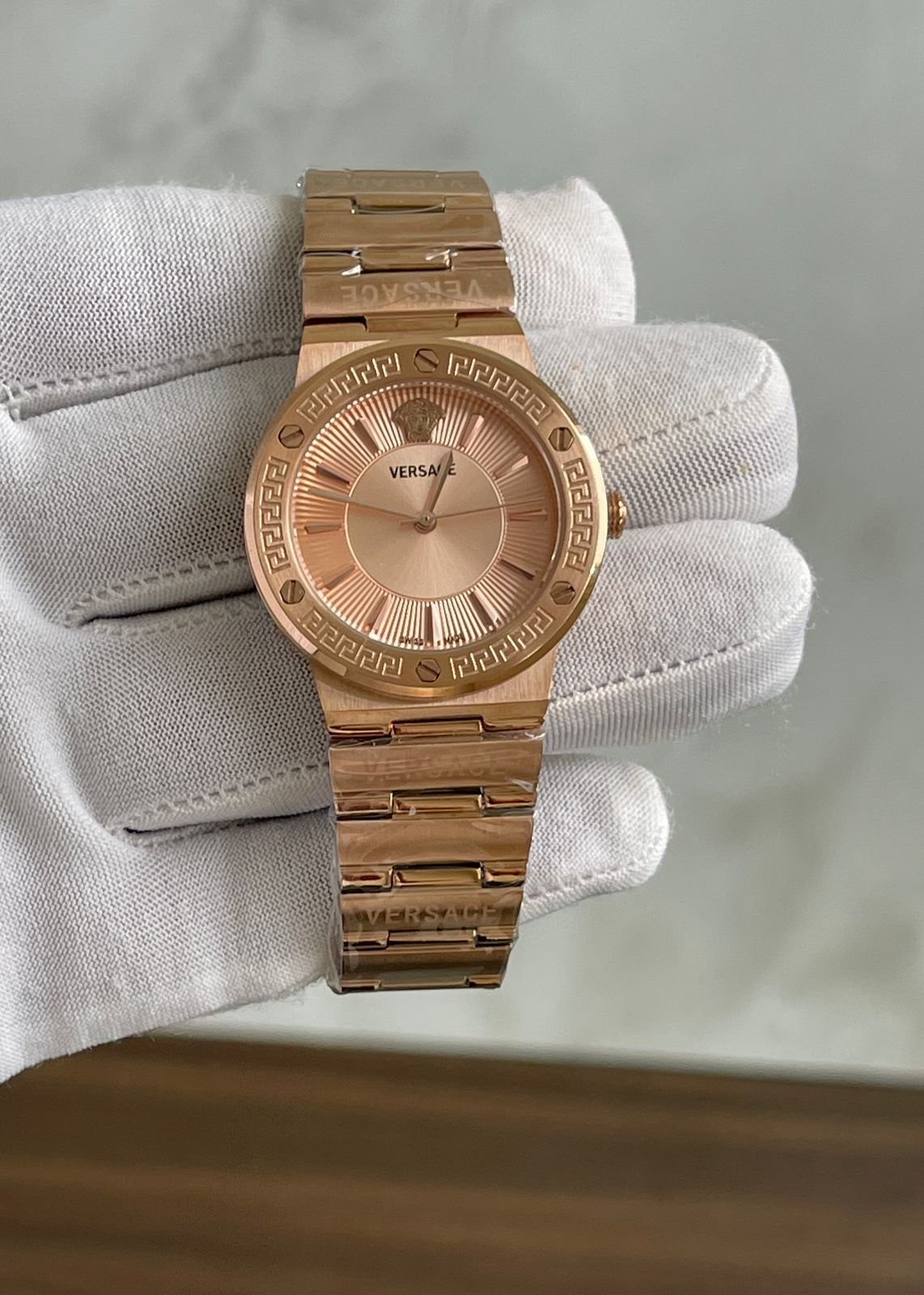 ✅ *The Versace Greca Logo watch combines contemporary and feminine design elements. The thin, round case contrasts with the rectangular bracelet links and lugs, creating a modern, yet graceful aesthetic.* ✅